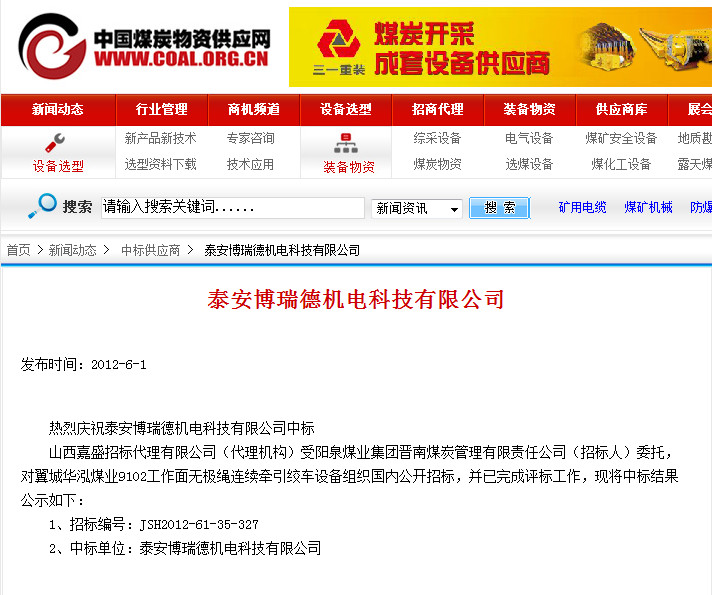 2、中標(biāo)單位:泰安博瑞德機(jī)電科技有限公司